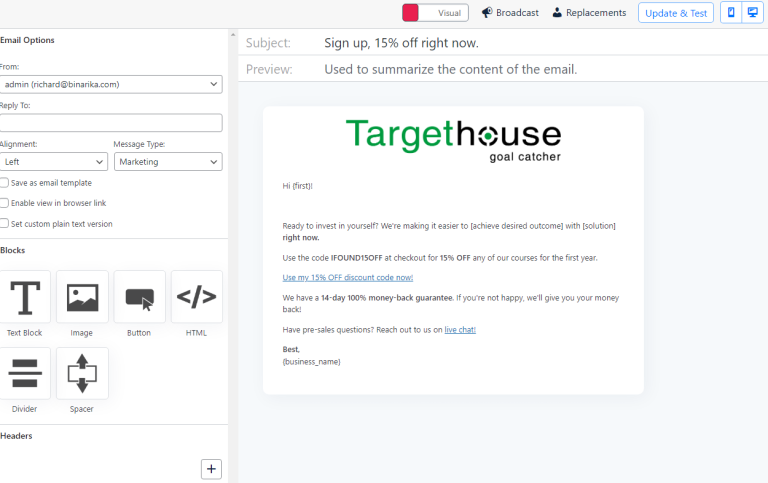 Send personlige og målrettede e-mails til din liste på få minutter.